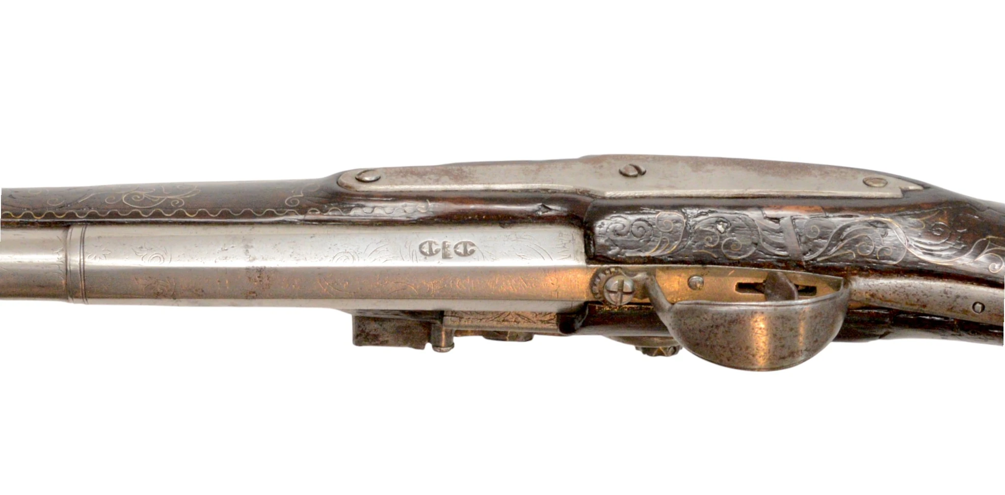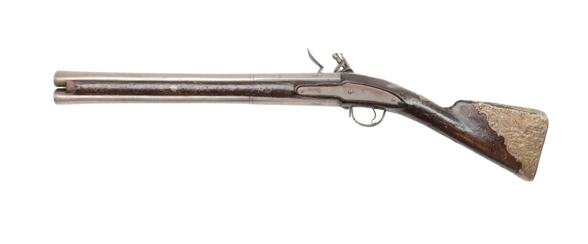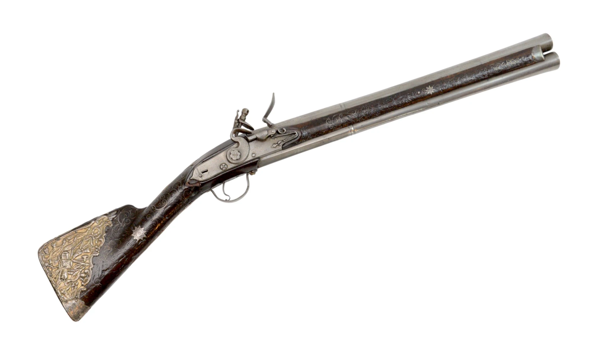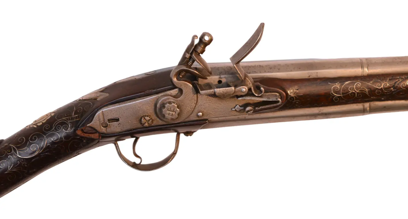 Очень редкий двуствольный кремневый мушкетон.