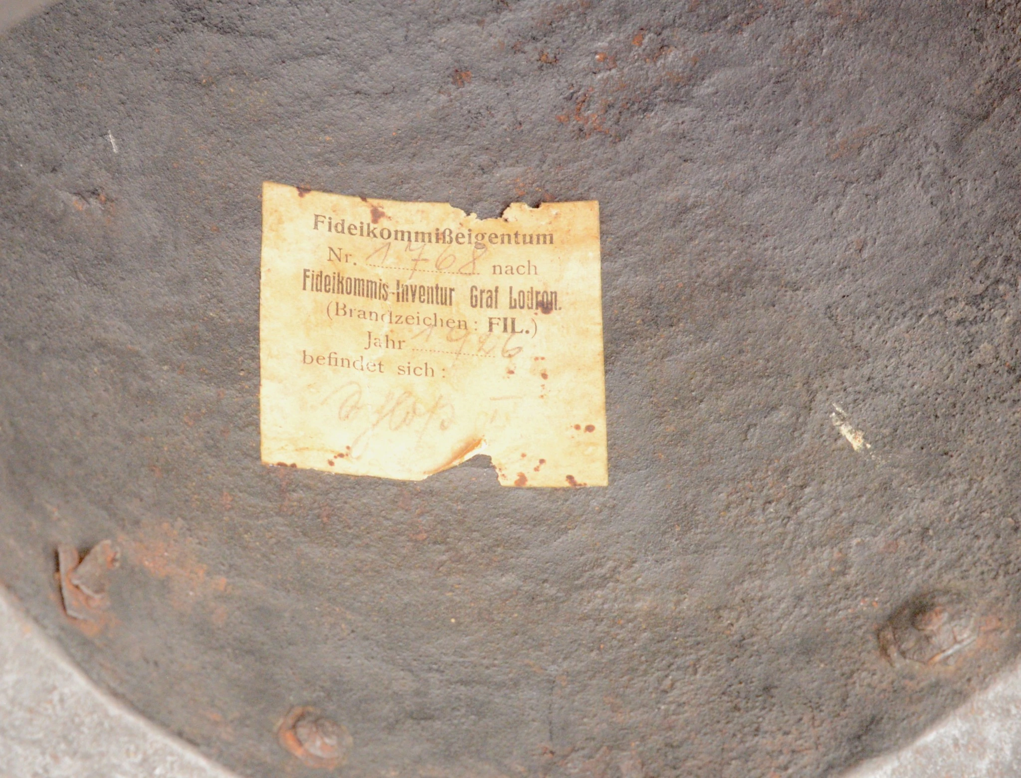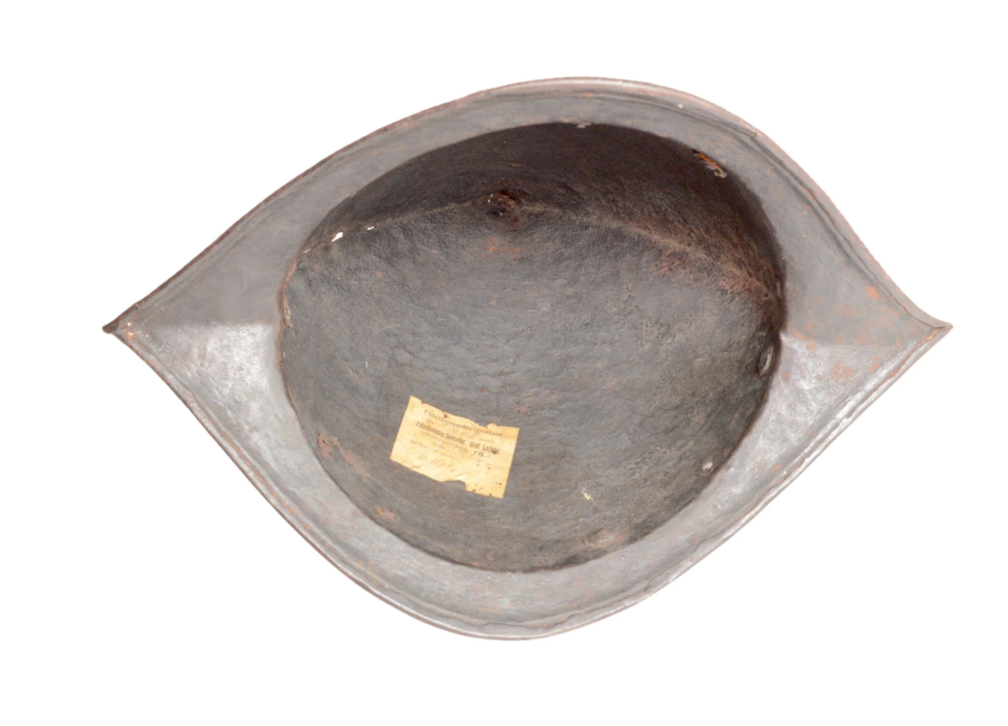 Щлем типа морион с инвентаризационной биркой музея.