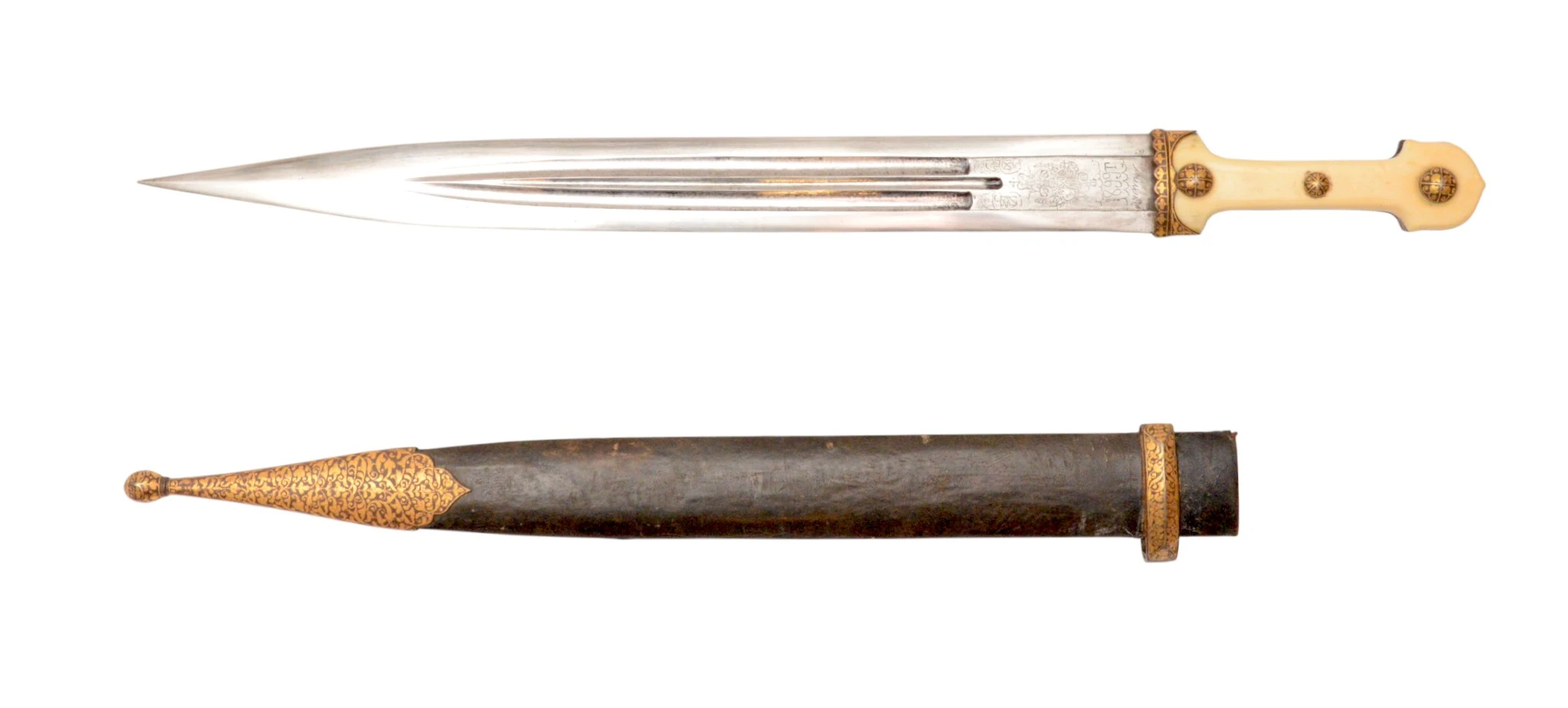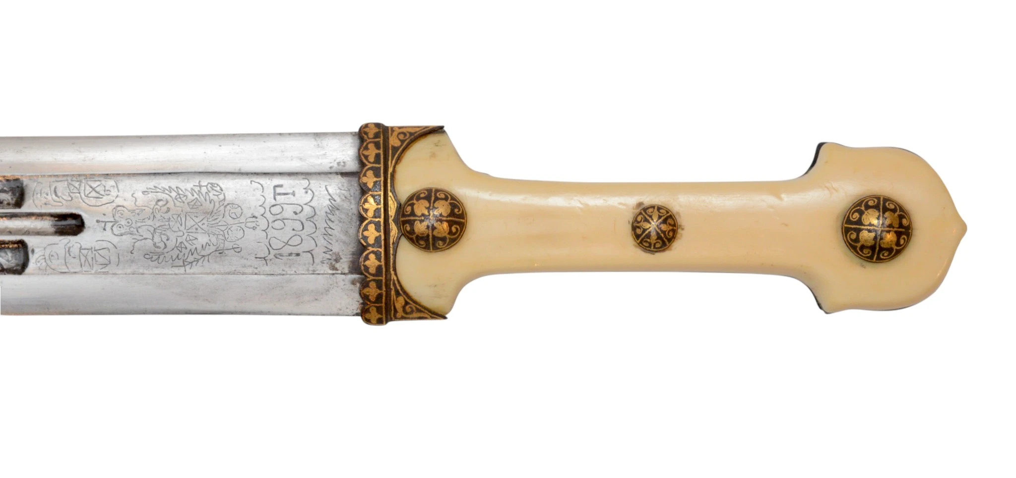 Рукоять слоновья кость, прибор в глубокой позолоте.